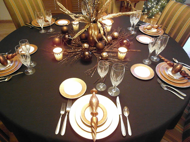 ReplyDeleteI LOVE gold, copper brown and chocolate together and the colour combo is perfect for New Year's! I really like the centerpiece you've created, very striking!