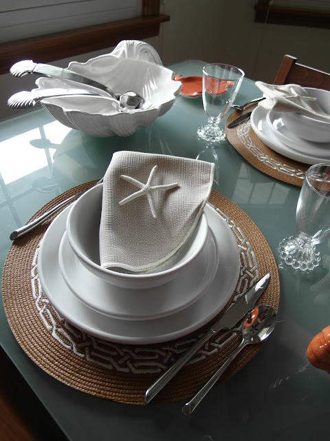 I've oceanized our bathroom and now its happening with the table.  I'm ready for summer!!